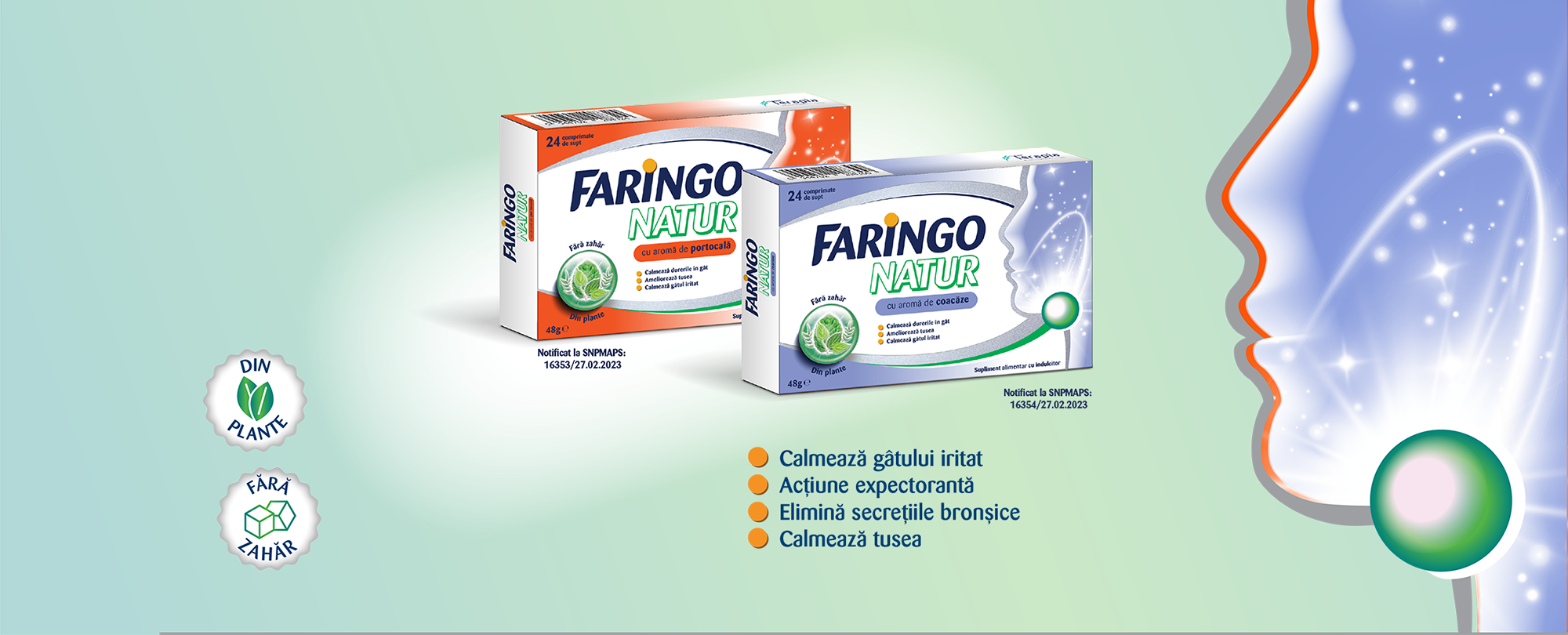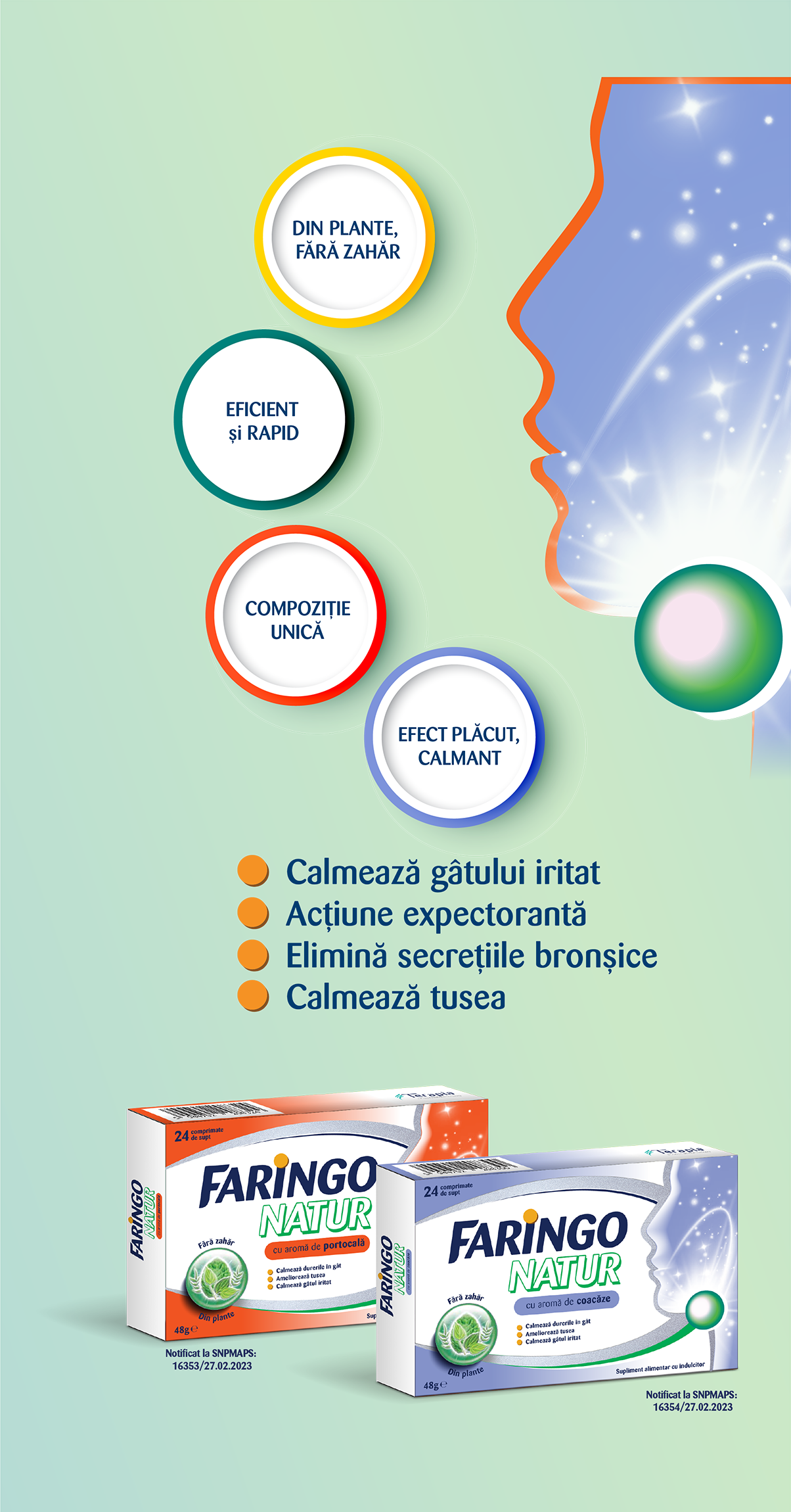 FaringoNatur are efect calmant în cazul gâtului iritat, precum și acţiune expectorantă, de eliminare a secrețiilor din bronhii și de calmare a tusei. FaringoNatur este folosit în calmarea durerilor în gât și ca adjuvant pentru ameliorarea tusei, fiind util pentru menținerea sănătății arborelui respirator.