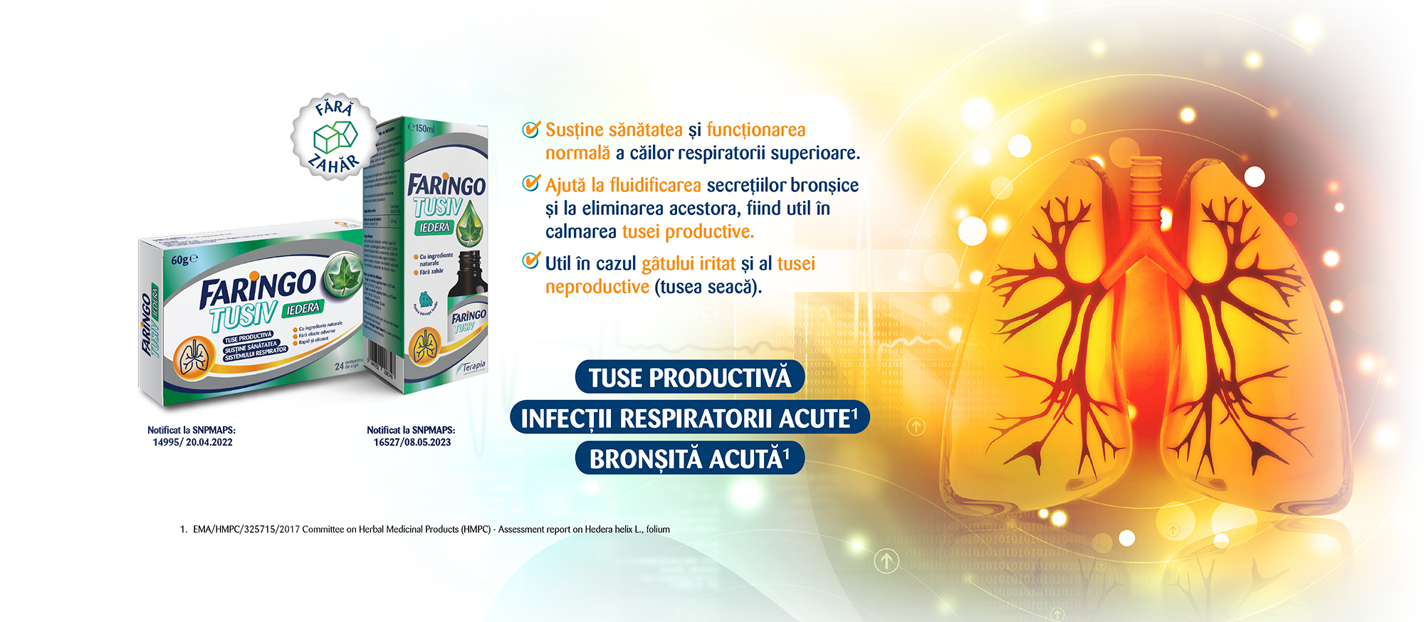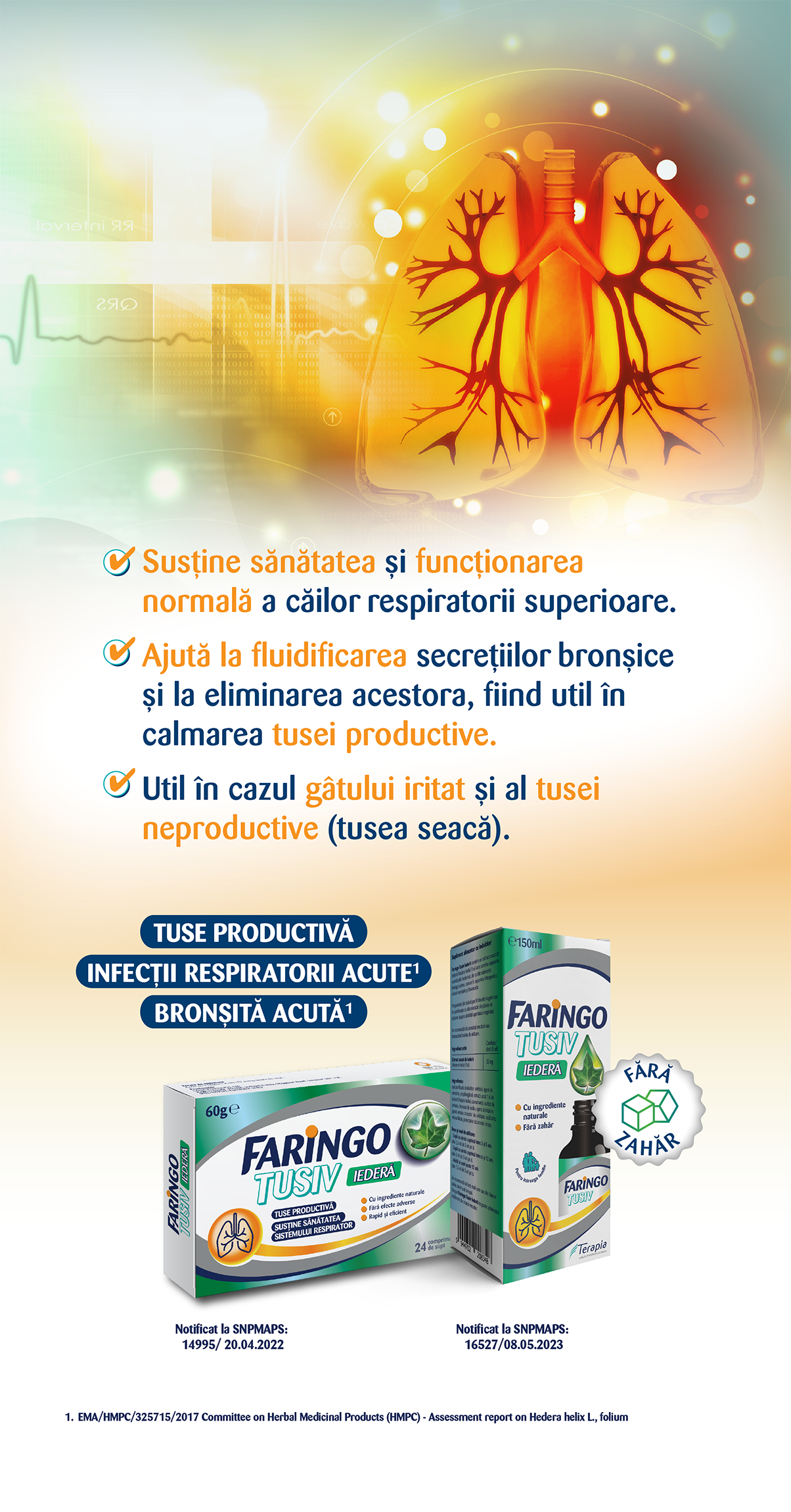 Preparatele din frunze de iederă pot fi folosite singure sau în combinație cu alte extracte din plante cu acțiune asupra sănătății aparatului respirator.