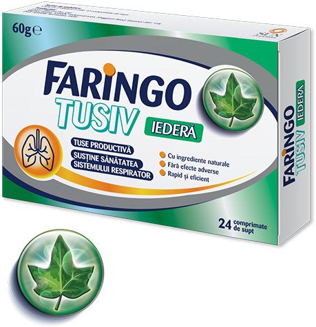 Faringo Tusiv Iederă conține un extract din frunze de iederă care conține o saponină numită alfa-hederină, dar și alte substanțe biologic active, cu efecte benefice, cum ar fi: saponine triterpenice, uleiuri esențiale și flavonoide.