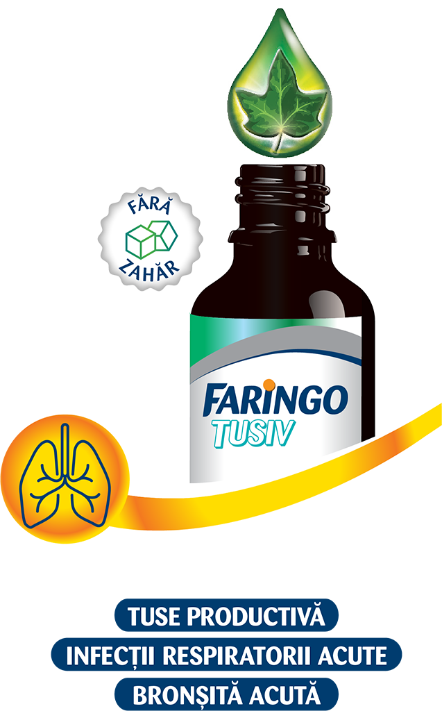 Faringo Tusiv Iederă conține un extract din frunze de iederă care conține o saponină numită alfa-hederină, dar și alte substanțe biologic active, cu efecte benefice, cum ar fi: saponine triterpenice, uleiuri esențiale și flavonoide. Preparatele din frunze de iederă pot fi folosite singure sau în combinație cu alte extracte din plante cu acțiune asupra sănătății aparatului respirator.